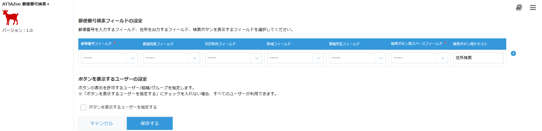 郵便番号検索を行うボタンを表示するユーザーを指定できます。