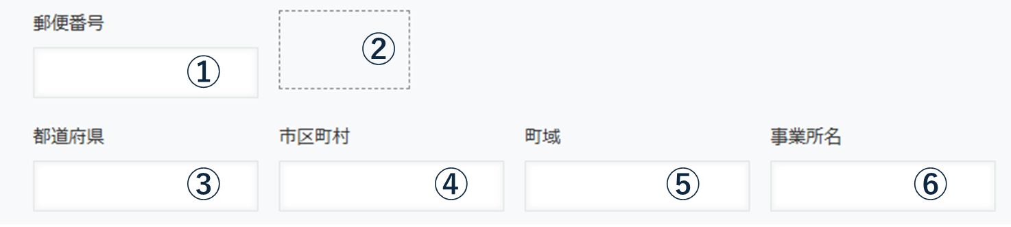 ① 郵便番号フィールド