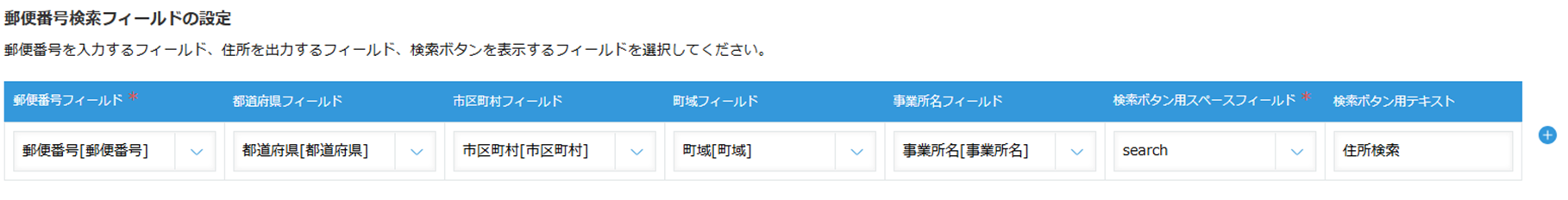 ・ 郵便番号検索フィールドの設定